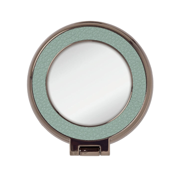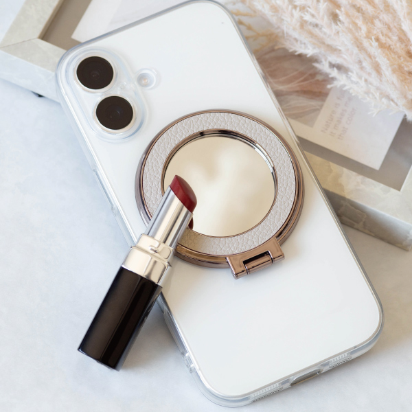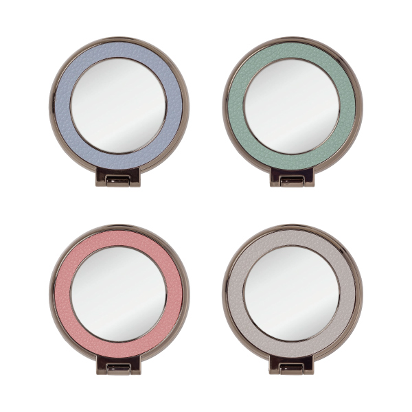 身だしなみチェックに便利な鏡付き。リングに指を通せば落下防止にも◎