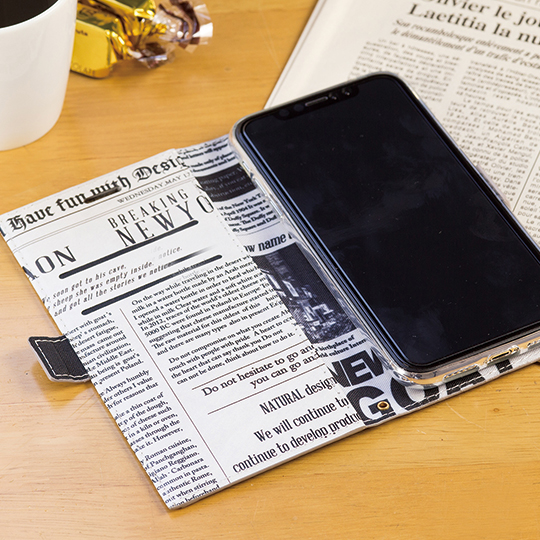 表と内側で印象がガラッと変わる、英字新聞柄のお洒落なケース。