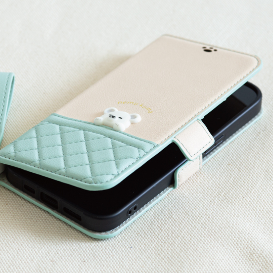 すやすやと眠る姿がかわいらしい小さなくまちゃんのスマホケース。